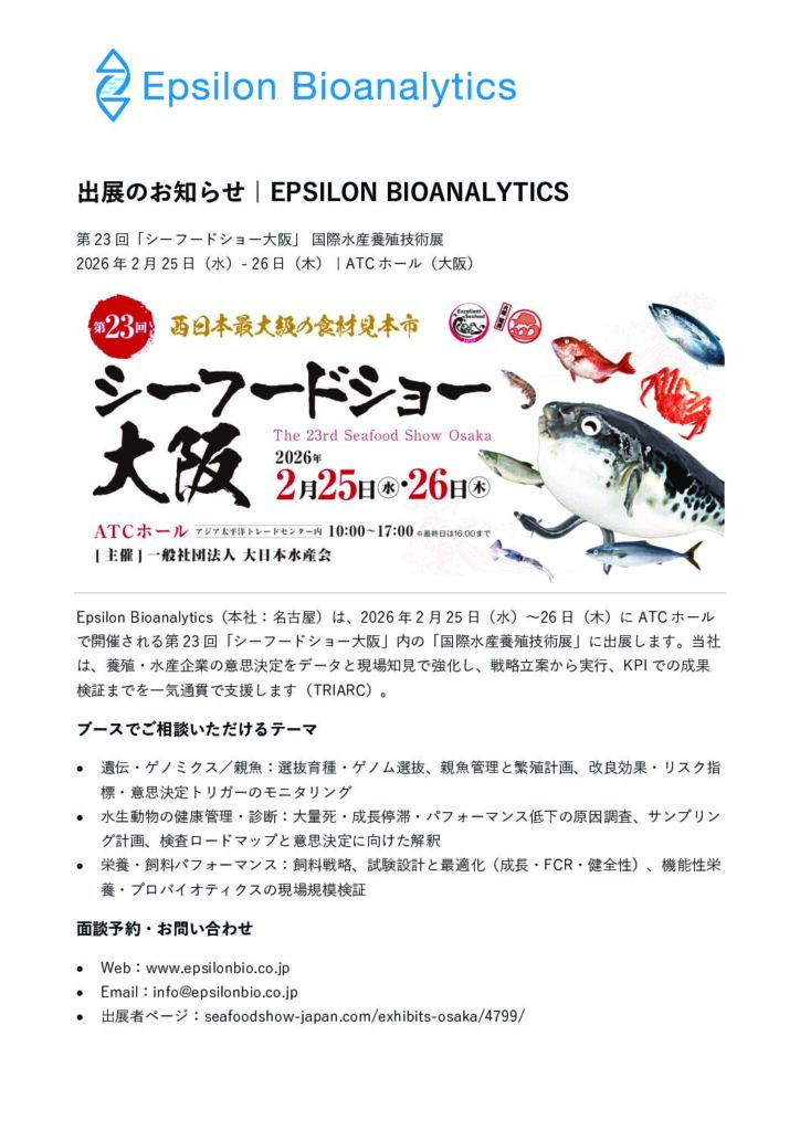(株)EPSILON BIOANALYTICS(以下、エプシロンバイオアナリティクス)は、日本の養殖業の中心地である三重県で、
